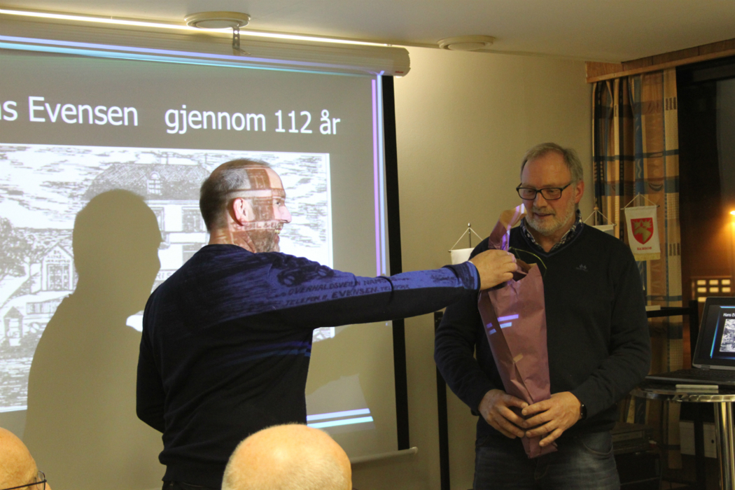 Kvalstad hadde lagt forholdene godt til rette med kaffe og snitter og holdt et interessant og engasjerende foredrag om ”Hans Evensen gjennom 112 år”.